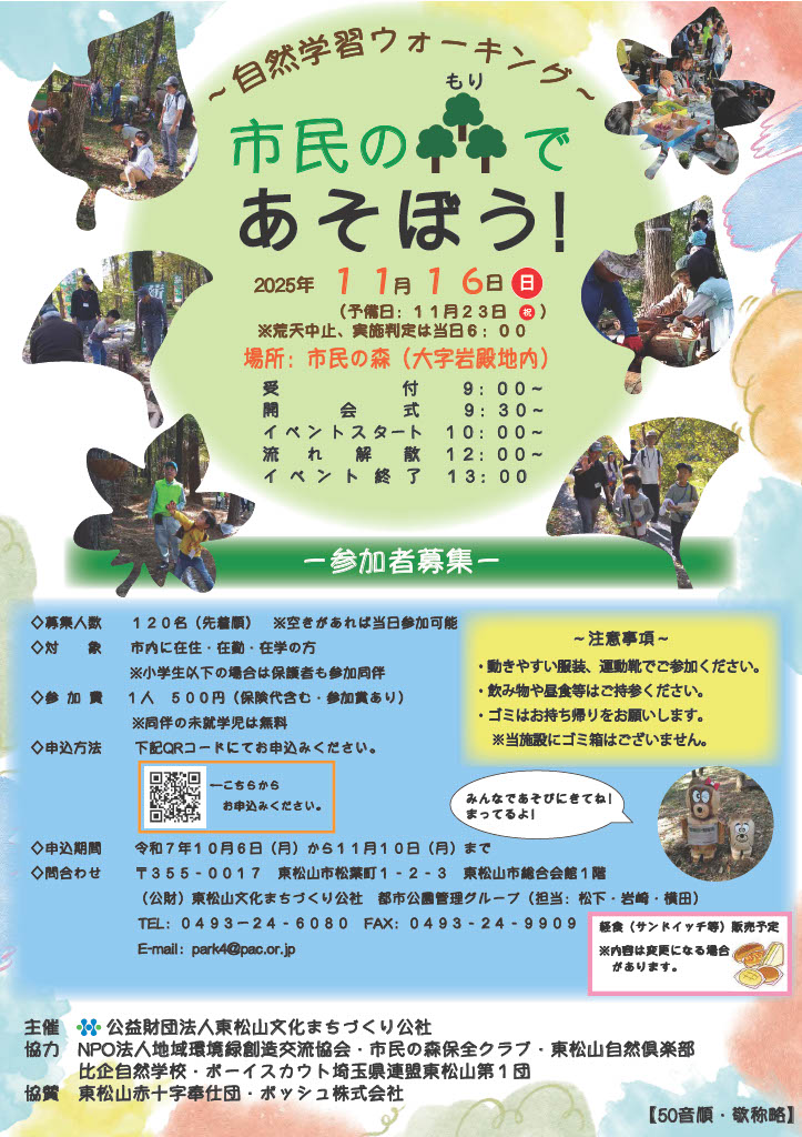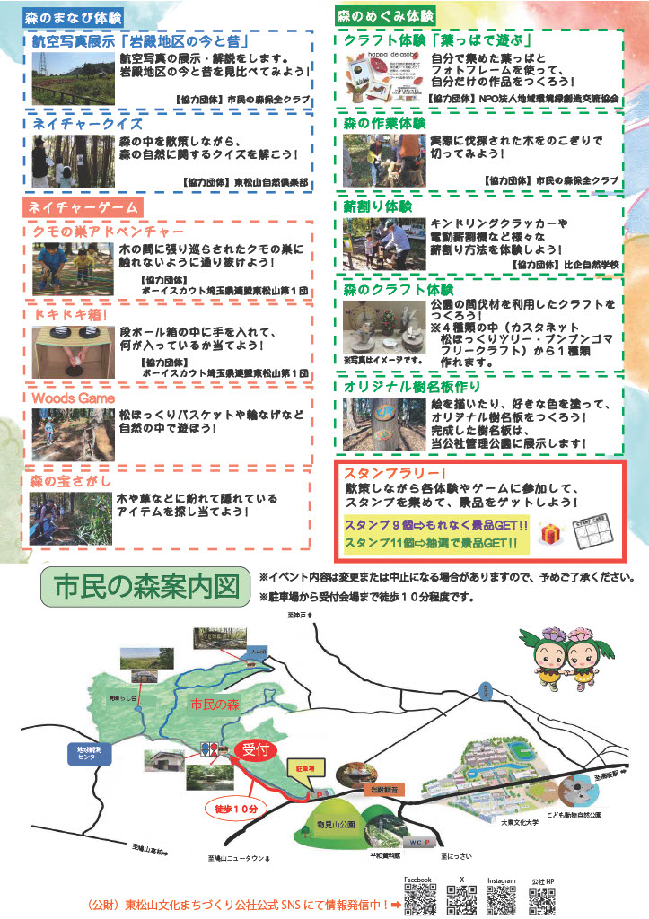 市民の森で、クラフト体験やネイチャーゲーム、自然や歴史を知るイベントを開催します!!