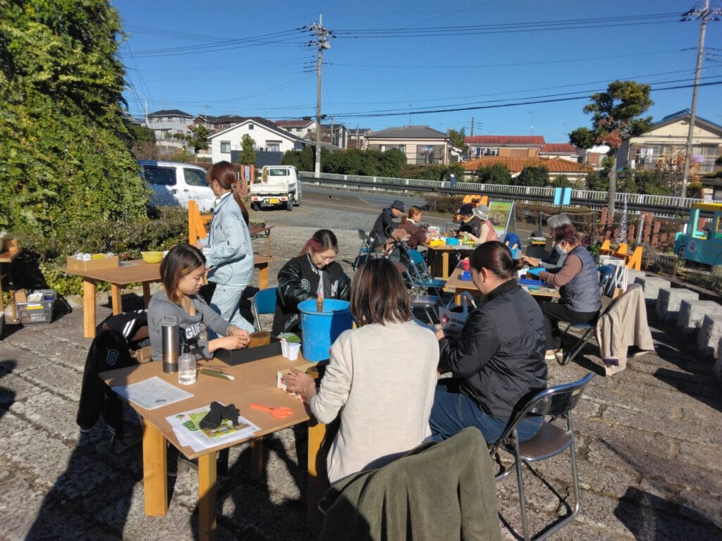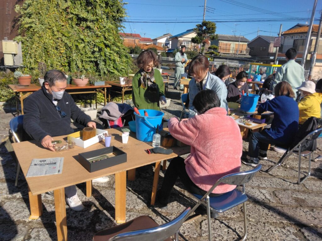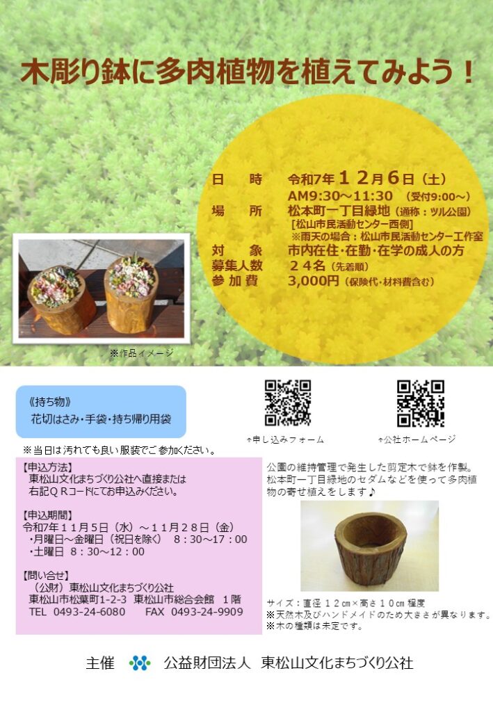 公園の維持管理で発生した剪定木で作った鉢に多肉植物の寄せ植えをしてみませんか?
